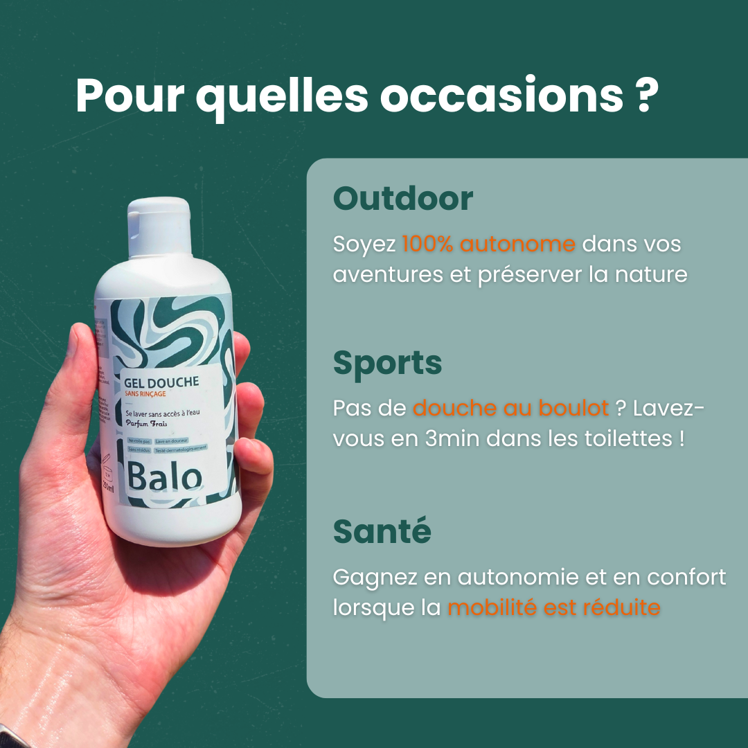 Avec Balo, tu te laves sans eau, sans douche, et sans polluer.
